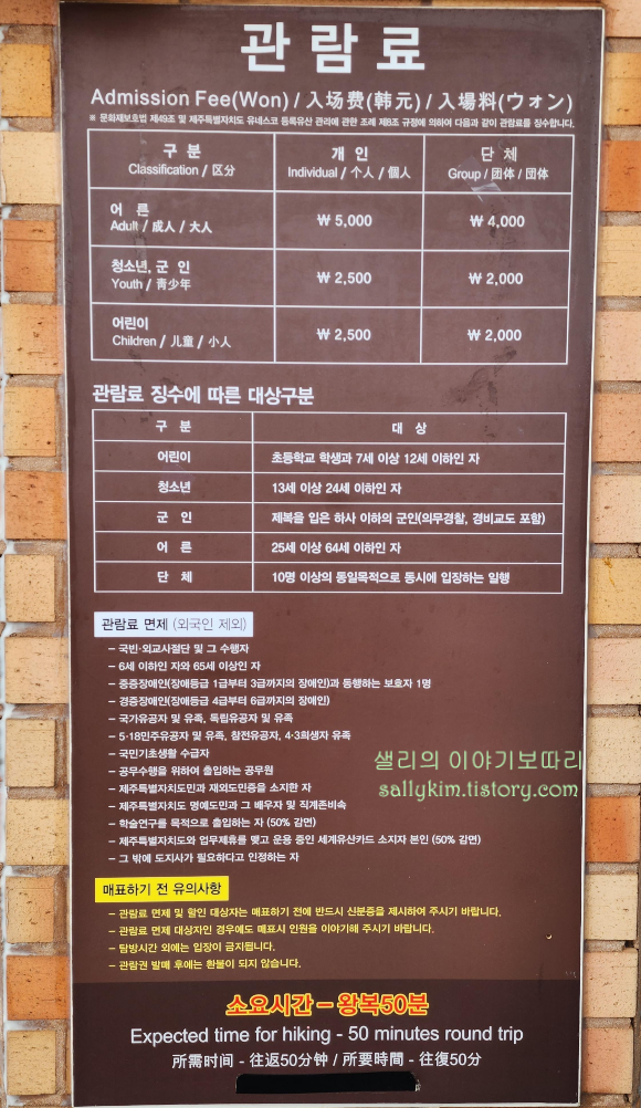 성산일출봉은 유료구간과 무료구간이 있는데요.