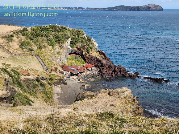 저 멀리 바닷가 가까운 곳에 해녀의 집도 보이네요.