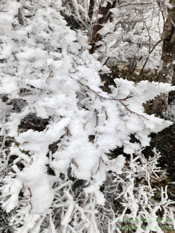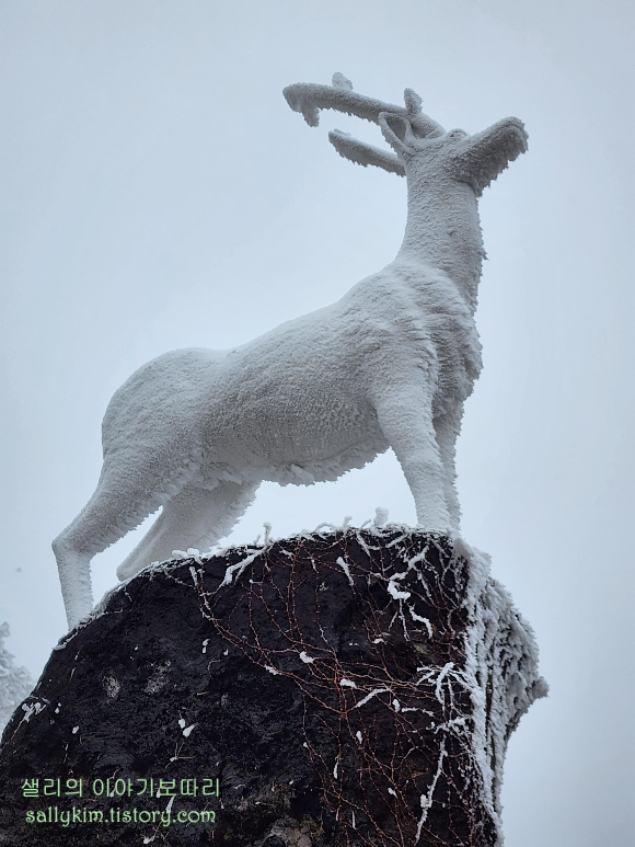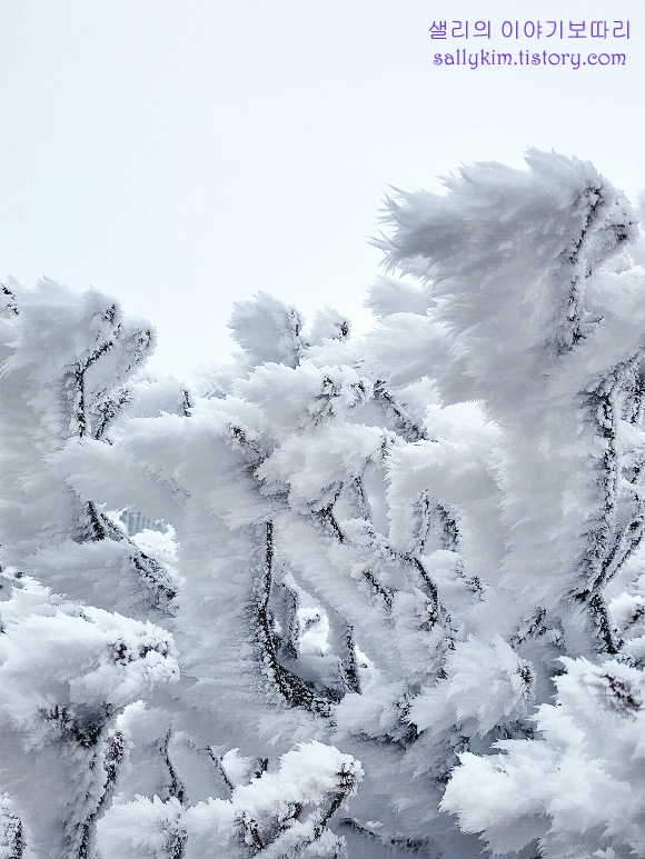 눈꽃이 백록의 털인양 온통 눈꽃으로 뒤덮인 모습이였답니다.