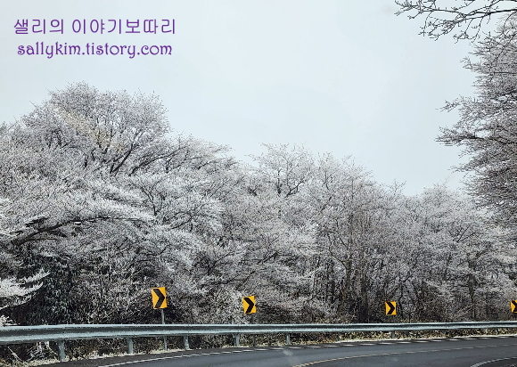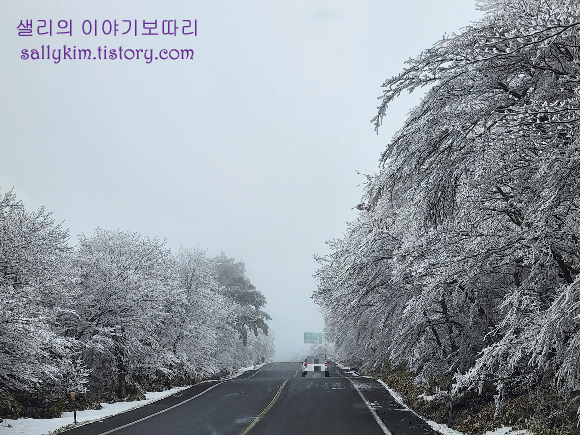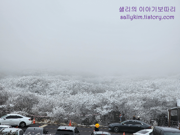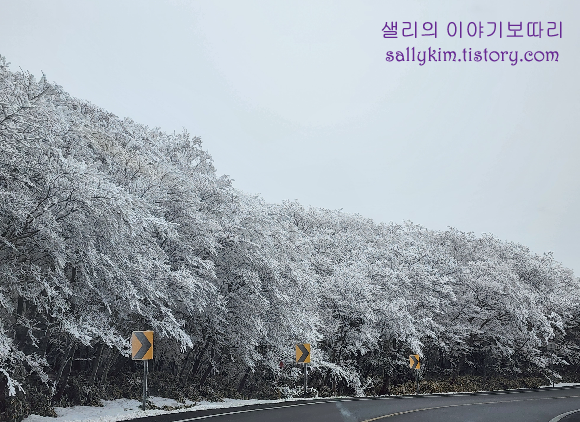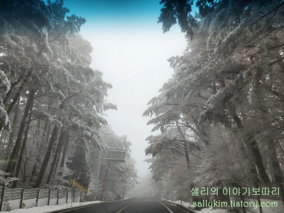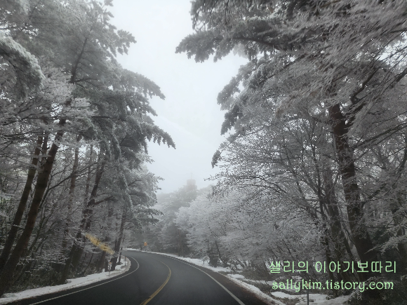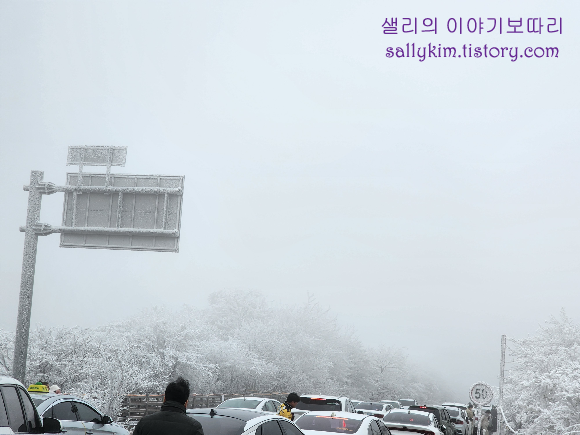 하지만 도로에서도 눈꽃이 핀 나무들 앞에서 사진찍는 분들이 많았습니다.